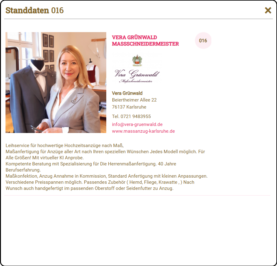 Stand 16 TrauDich! Karlsruhe 17.-18.01.2026 Massanzug-leihen | Anzüge leihen statt kaufen | für jeden AnlassVeröffentlicht von Vera Grünwald in Blog · Freitag 09 Jan 2026